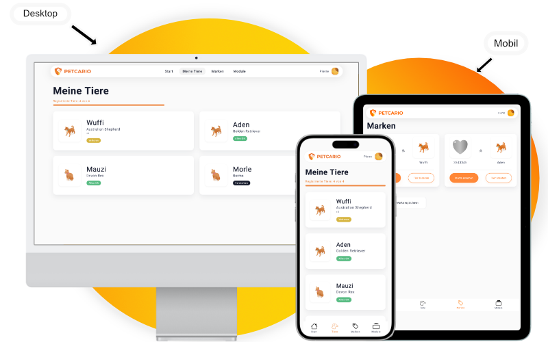 Die Petcario-Plattform funktioniert nicht nur in jedem gängigen Browser sondern ist auch PWA fähig, für langsame Verbindungen optimiert und bald auch im iOS AppStore und Android PlayStore verfügbar. Egal ob du Petcario auf deinem PC, dem Tablet oder unterwegs auf deinem Smartphone benutzt.